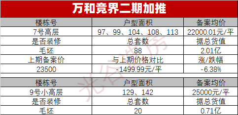 24年3月份,加推了两栋楼,7# 号楼高层备案均价22000元/㎡,对比二期首开备案价下降1500元/㎡,9# 号楼小高层首开,备案均价25000元/㎡。