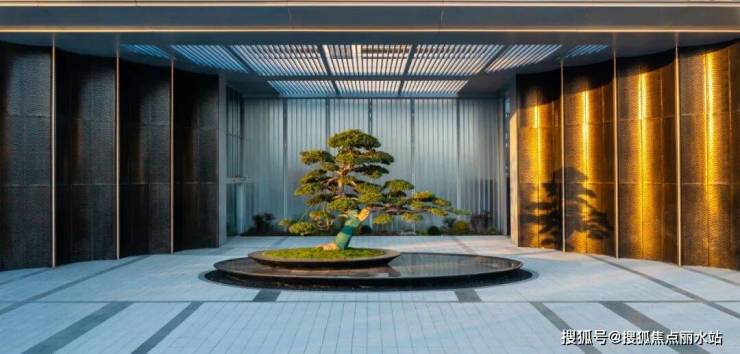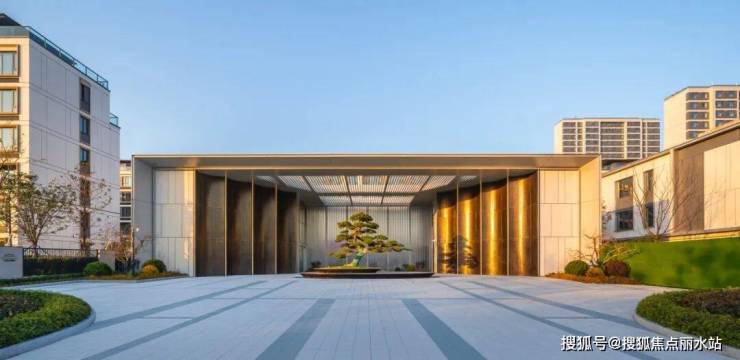 震撼、奢华的开阔门头,点缀形似“迎客”的苍劲古柏,不吝成本的巨大投入,从这里归家,自然是步步高升