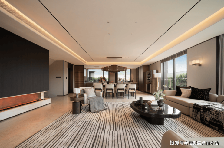叠墅部分则延续了“现代形,东方意”的咏溪云庐设计语言,以香槟色铝板与玻璃幕墙为主材,通过利落的水平飞檐与更大窗墙比,营造出轻盈通透的当代感。这种“双线并行”的设计策略,既满足了高净值客户对欧式庄园的审美执念,又契合了新兴财富阶层对现代生活的功能需求。