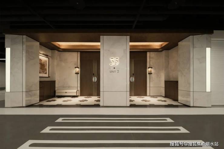 更精妙之处,在于对生活细节的极致打磨。叠墅不仅配置光厅与独立电梯入户,更将门牌以定制壁龛呈现,通过艺术化造型,彰显居者的独特品味与个性主张;立面则巧妙融入独立信报箱与快递存储柜,在保障私密性的同时,实现功能与美学的完美融合。