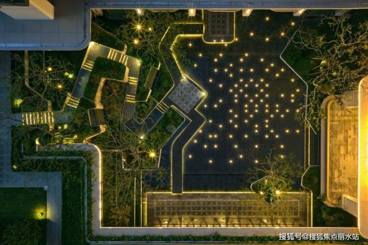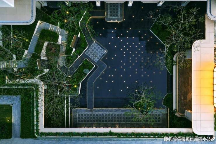 云台林境高低错落,将首层架空与社区花园贯通。同时与下沉式庭院融为一体。在这里,架空层泛会所才真正实现了与会所的互动与结合。