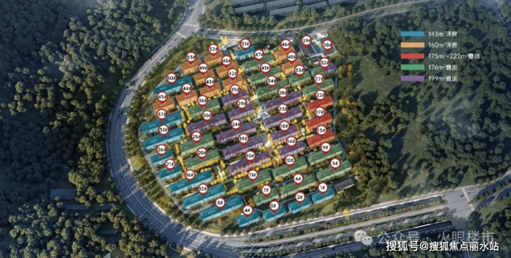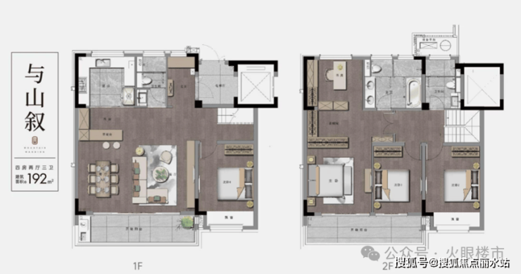 山水叠墅:建面约190-210㎡,4层立体空间,上层览景,下层拥院。