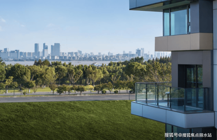 户户配备瞰江露台,外立面以铝板搭配大面蓝灰玻璃,打造高颜值现代极简立面。