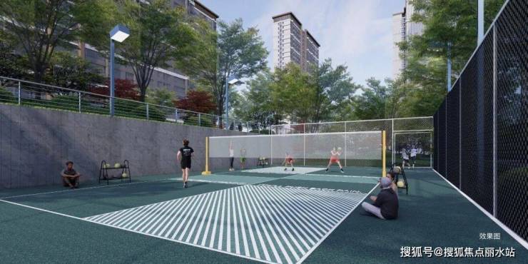 创想运动场红蓝相间的硅PU地面色彩鲜明,耐磨防滑,搭配四周醒目的白色边线与中线,勾勒出专业运动场地的利落轮廓,篮球场周边,错落分布着多样活动设备“高低错落的单双杠、环形健身步道、多功能健身器械区配备引体向上器、椭圆机等设备,满足不同年龄与运动习惯的人群”。