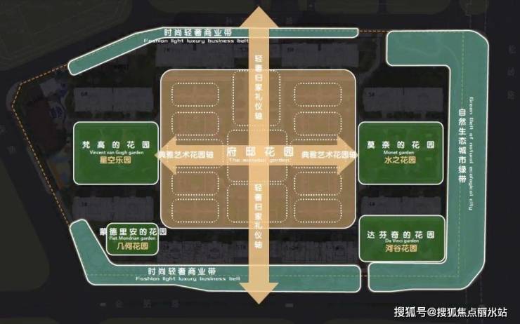 有邻花园景观遵循“府邸花园邂逅艺术美学”的设计理念,打造“两带两轴一心四园”的景观结构,以臻品工艺、高定生活、艺术品味为基调,树立极致奢美豪宅新标杆。