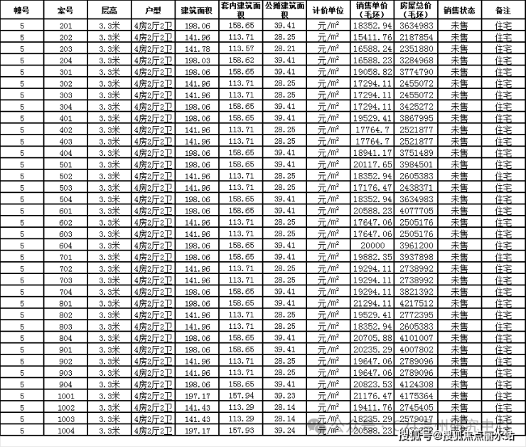 项目面向高端客群,本期在售建面约 141-198㎡洋房 ,公开预销售毛坯均价18866元/ ㎡(未含优惠)。最低15411元 / ㎡(未含优惠),最高21294 元/ ㎡ (未含优惠)。