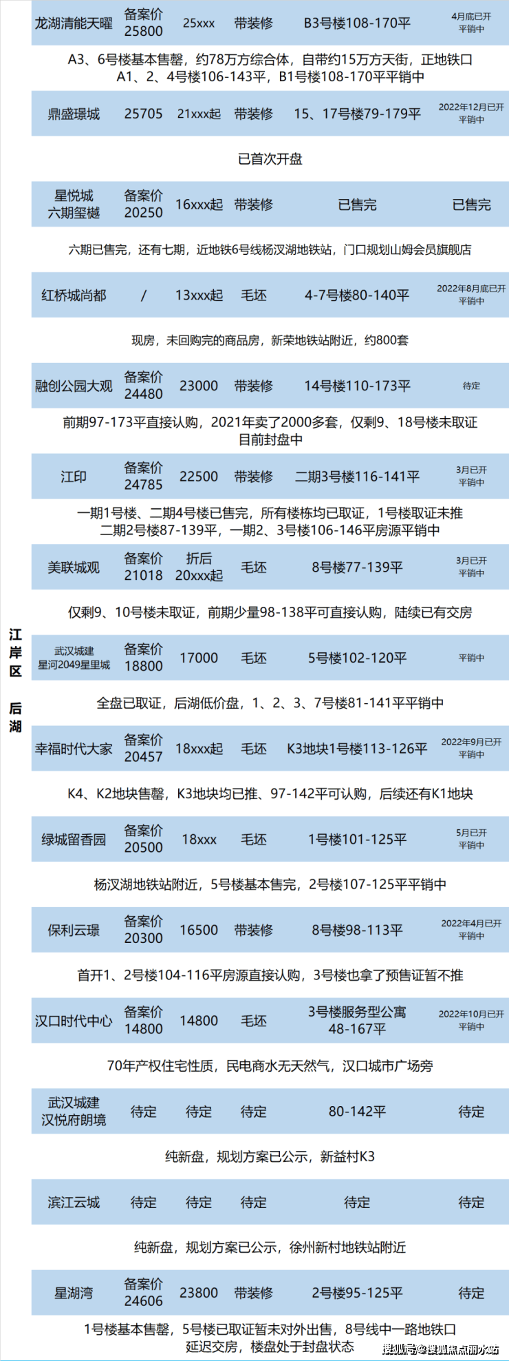 后湖楼盘动态表: