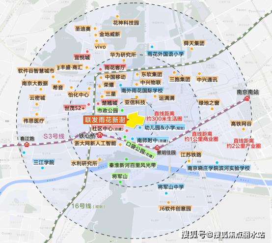 直线距离约2公里内,科技大厂环绕,充满科技与活力,为南京发展注入动能。