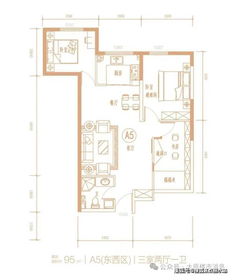 95㎡:朝北三居 楼层可选 32套