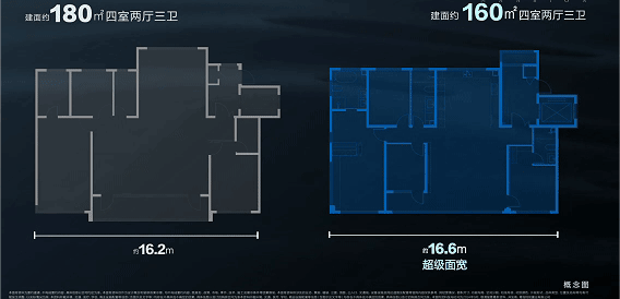 超出同行业的高空间使用率——比如滨湖2期160㎡的产品可享受市场上180㎡的空间生活,从技术层面让居者享受更多的空间。