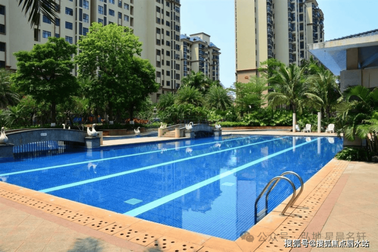 打造金清罕有的社区泳池,并采用多重技术保障水质清洁,明净的水光倒影着蓝天与白云,像极了一颗蓝宝石镶嵌在都市谧境中。在园林的设计上,绿植与泳池的搭配营造出“行到水穷处,坐看云起时”的云水盛境视觉感受。