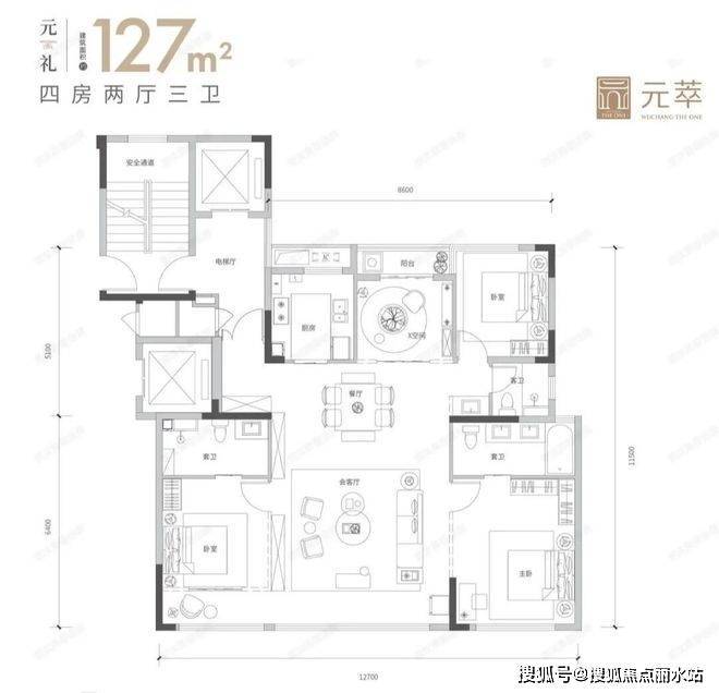 127平,做了4房2厅3卫,做了2个套房,这公摊估计不是0,而是负公摊了。一梯一户,带有电梯厅,不带连廊,可以南北通透,并带北阳台设计。