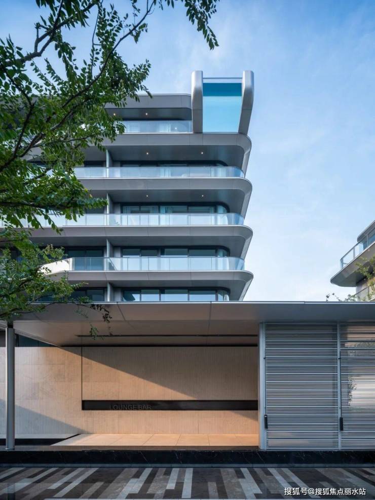 为使自然优势能最大化利用,建筑立面采用皓月银铝合金面板配合大面积的落地窗,自然景观面被大大拓宽,室外优质景观与内部空间相互交融,整个建筑由外而内浑然一体,和谐共生。
