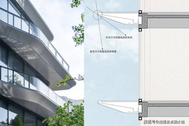 通过控制飘板的形状大小可以更加合理的运用自然光,避免阳光直射,并通过在上表面做约5%的坡度帮助排水,增加铝板的自洁性。