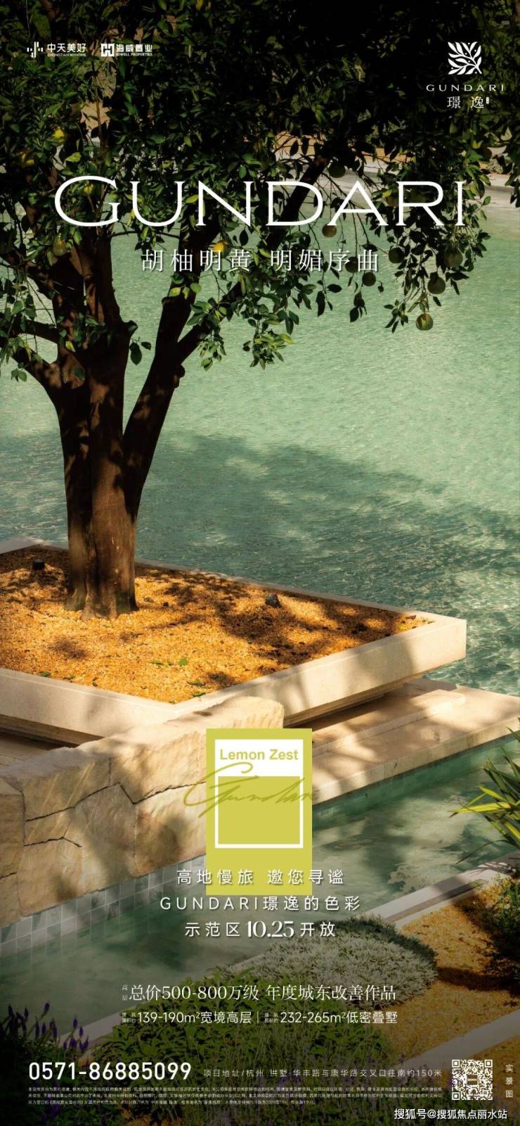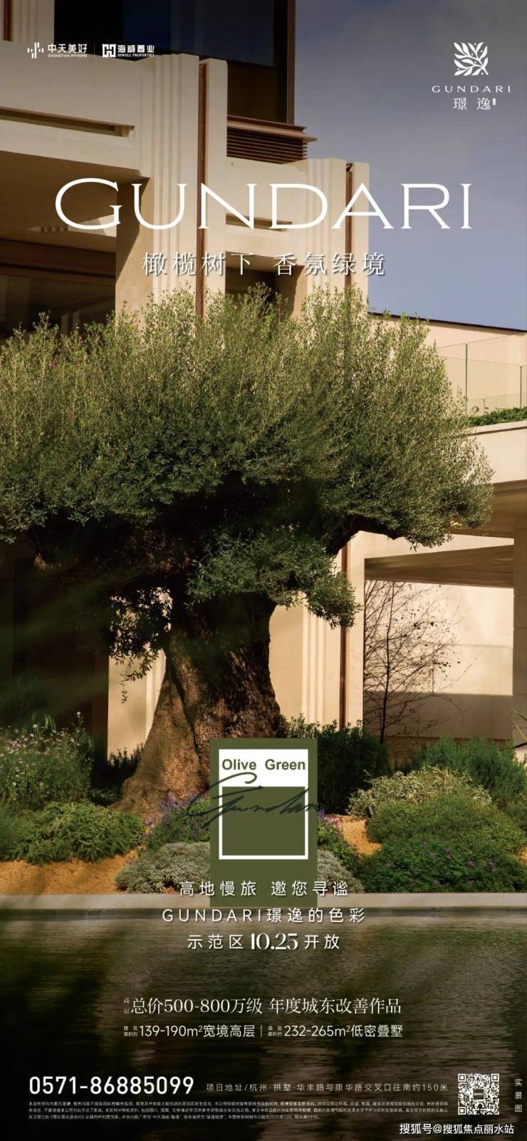10月25日, 璟逸 GUNDARI作品示范区正式开放,向全城客户发出了一份旅心都会的邀约,它如同一个时光容器,把橄榄树下的悠然时光与杭州一同欣赏。在示范区现场,循石院门庭而入,橄榄水庭交织地中海蓝、银灰油橄榄绿、胡柚的明黄,松弛的度假情绪随着色彩而流动。花境大师创作的砾石花园还原南法的浪漫,拾阶而上,更可在瞭望云台一览心中的蔚蓝海岸,塑造出高浓度的生活情境—— 在这里闻得到胡柚飘香,触摸得到粗粝的质感,可以 聆听风吹过油橄榄的簌簌声, 脚踩过砾石颗粒咯吱咯吱的声响 ,丰富的感官体验将情感景观设计表达 得 淋漓尽致。