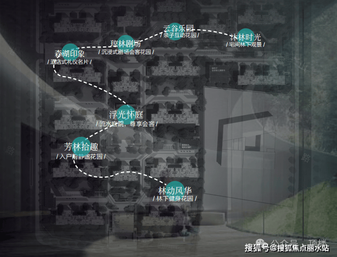 【湖森雅境】森湖印象、琼林剧场、浮光怀庭、沐林时光、芳林拾趣、云谷乐园、林动风华。