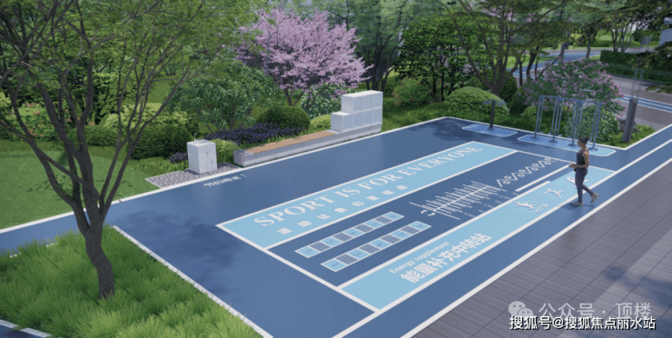 观澜雅境特别定制约947m林下双环跑道,特别设置运动加油站、起跑热身区、跑道超越区、跑道标志等细节,实现跑步、运动、健身、散步互不干扰。