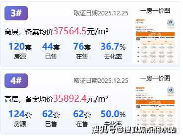 该项目4栋住宅一次性推出,于2025年12月26日首开,整体价格约2.35万-2.95万元/平,总价约300万-500万左右。