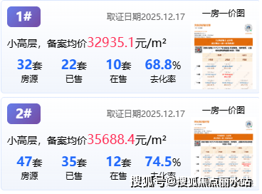 从1、2号楼的去化情况来看,2号楼卖的略好,去化已过半。