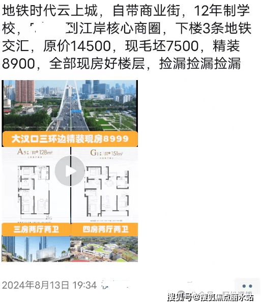 2024年8月,地铁时代云上城突然以毛坯7500元/平,装修8900元/平的价格开始卖房。在此之前,项目早期毛坯约14XXX元/平,后续降到过10xxx元/平。