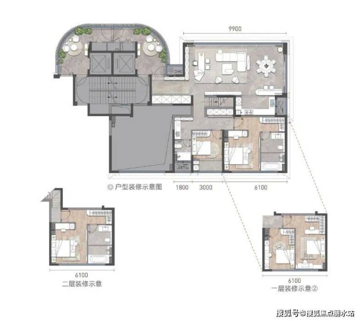 大平层尺度客厅面宽约6.1m