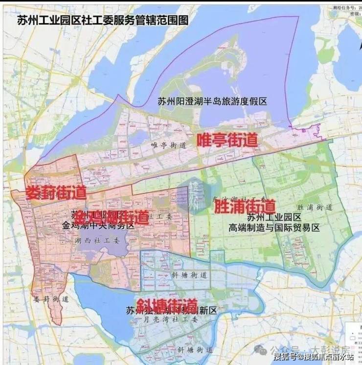 2021年苏州工业园区官网公示园区街道规划变更方案,胜浦街道吞并东沙湖社区,和金鸡湖街道共同瓜分奥体板块,成为高贸发展核芯。胜浦街道占地面积达到68平方公里,一跃成为园区最大街道。此次街道划分,更加验证了园区向东发展的必然趋势,以及园区政府对胜浦街道的重视。
