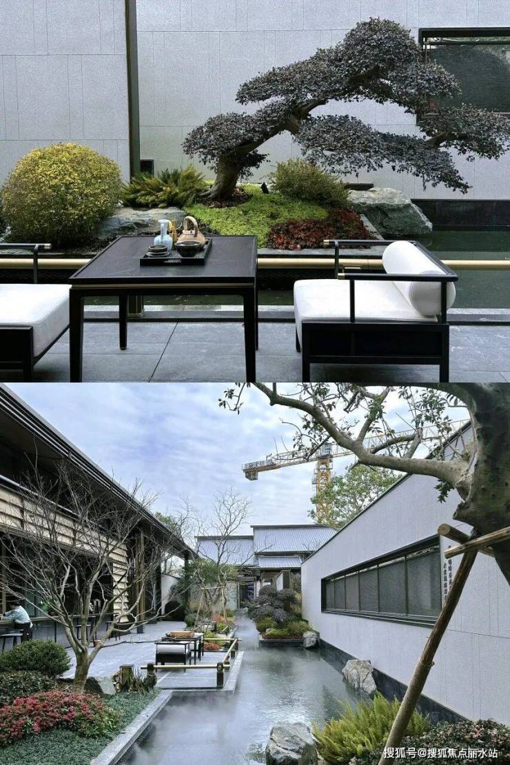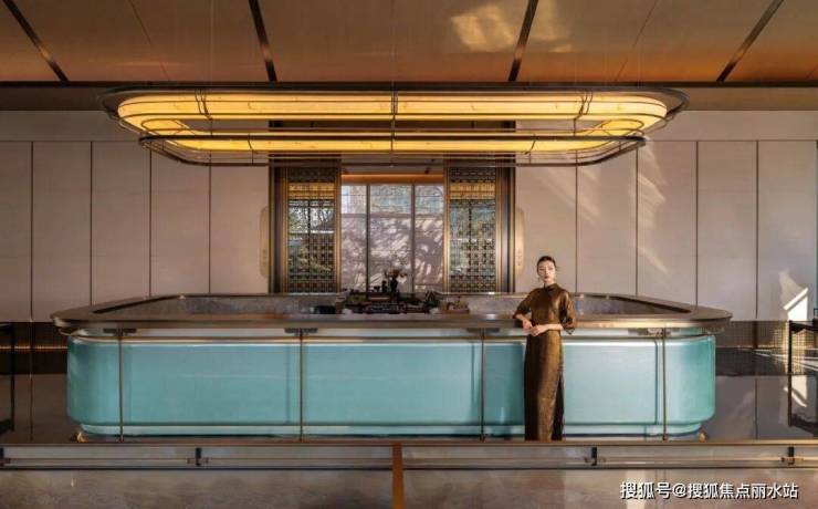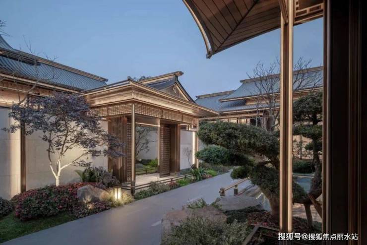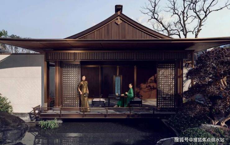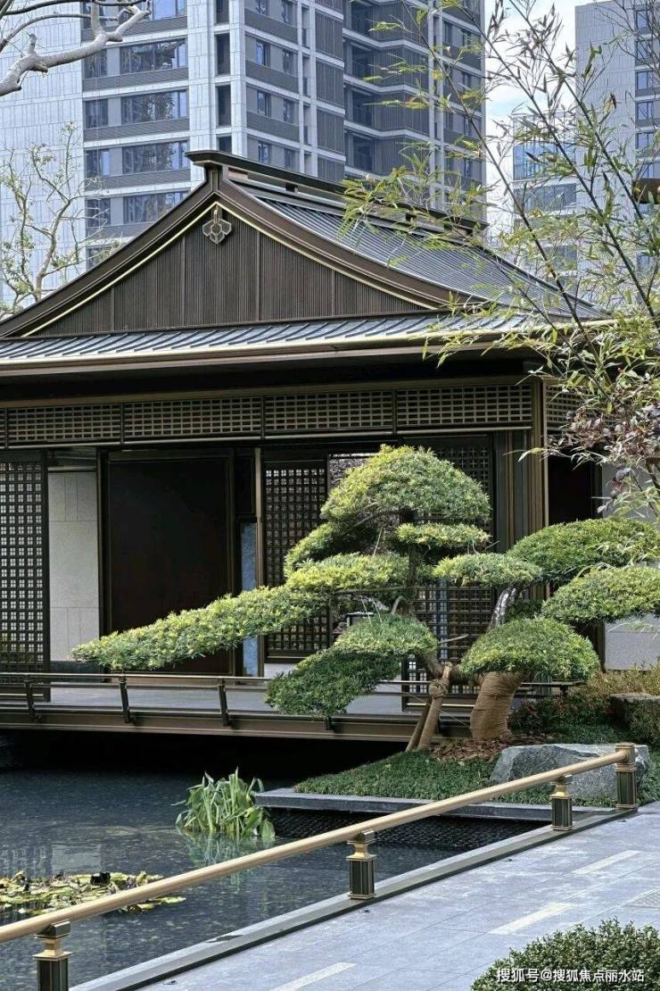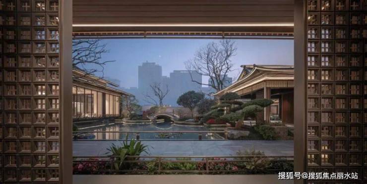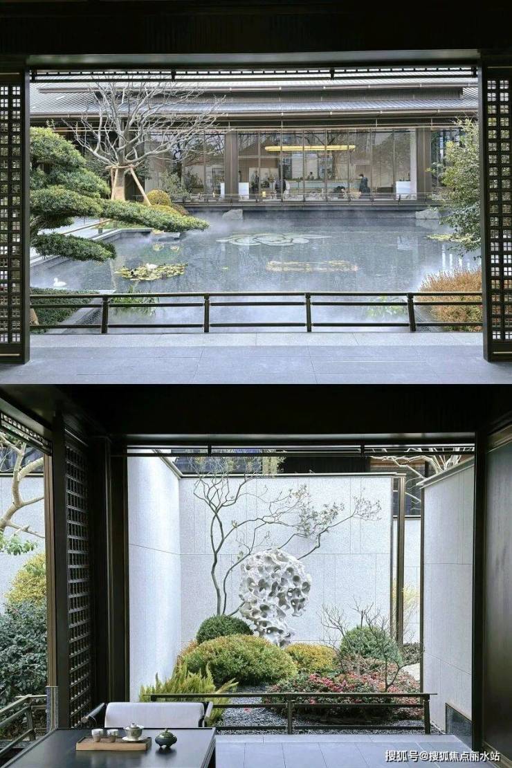 建筑立面设计大面积玻璃墙面清透如水,明暗对比与色彩过渡自然惬意,与周边景色融为一体,飞檐沉静如山,与玻璃面相映,如同山水层叠,交织。BAC佰恺设计的创意 “翘角飞檐”,如同传世名画《瑞鹤图》中自由栖居的仙鹤,命名为“千鸟脊飞檐”。弧度经过反复调整,最终以低调灵动的现代立体设计语言重现飞鸟清丽脱俗的神态,成为立面设计上的点睛之笔。窗框下部采用了“美人靠”构件,精致简约而又细节感十足,层次上步步递进,还原宋代风貌特征,具有极高辨识度。