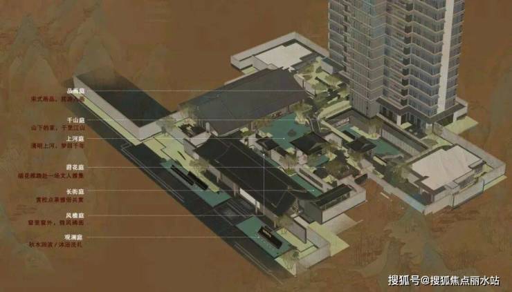 在精研宋代文化和建筑特征的基础上,打造了全新产品系【风雅宋韵】,以 【轻、闲、霁、金】的匠造手法,对产品进行文化溯源与转译,真实复刻宋代风雅市集,抽象凝练宋韵印象,呈现千里江山的壮观场景。