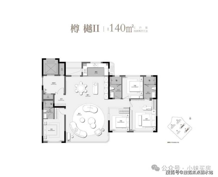 小高层3号楼包含两个建面约140平的户型,一个是方厅设计,一个是全景舱设计。