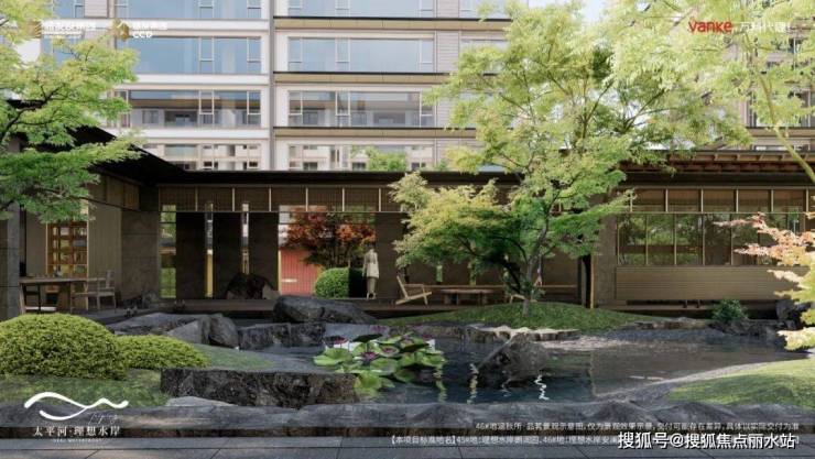 园林更有意思,直接搬来了清代安澜园的造园手法,打造约1万㎡现代滨水隐奢的古典园林,规划“两轴六园六雅事”——即在“自然礼序轴+人文生活轴”两大景观轴线上,打造六个主题园林,每个园林都有对应的“雅事”,比如在“涵秋所”里喝茶,“四宜屋”里读书,“染霞池”里观荷……把古人的生活仪式感搬进现代社区,匠造一个“大隐于市,心泊雅境”的精神栖居之所。