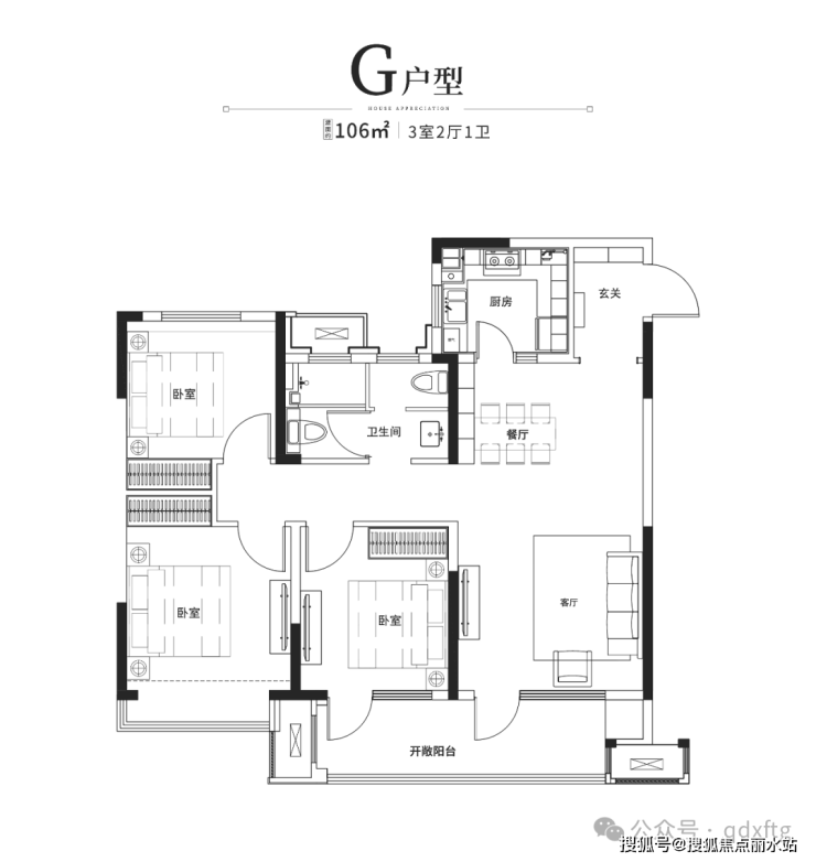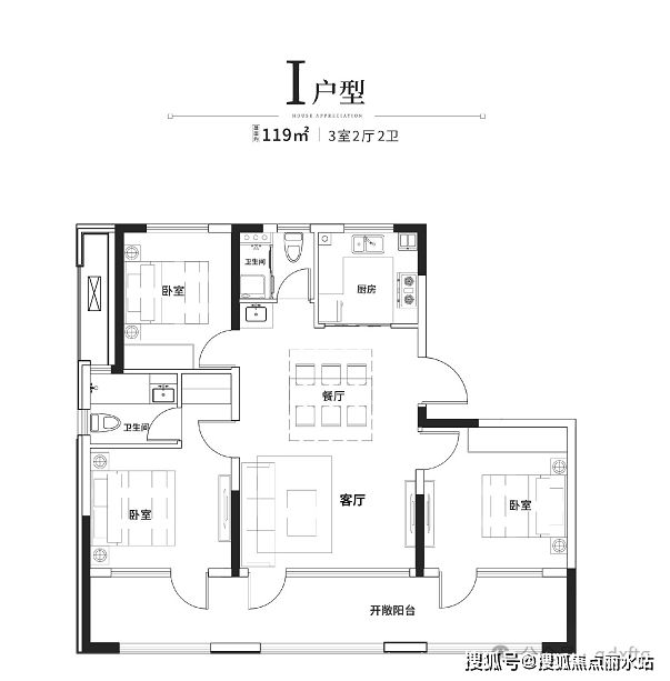 120㎡(11层洋房-动静分离户型)三室两厅两卫,