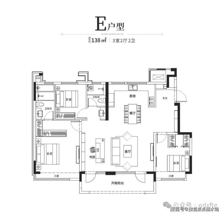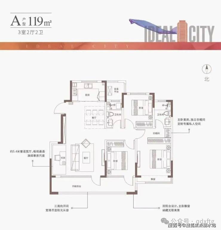 120㎡共18层一梯一户,(元宝户型)三室两厅两卫