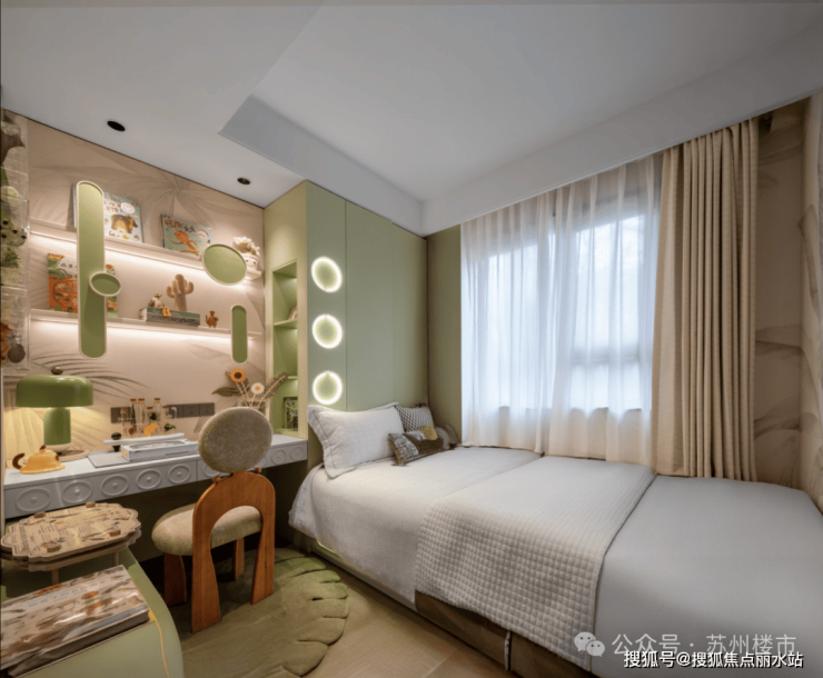 南向双卧室,其中主卧套房设计,凭借南北飘窗、独立卫浴等贴心配置,精准契合年轻人想要的“舒适感”和“专属感”。