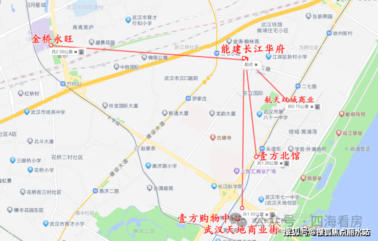 另外,周边约2.5公里范围内还有金桥永旺、壹方北馆、壹方购物中心和武汉天地商业街。1号线和3号线分别可以直达江汉路商圈、国广商圈、万象城、花园道等等,商业只要它想,去哪里都方便。