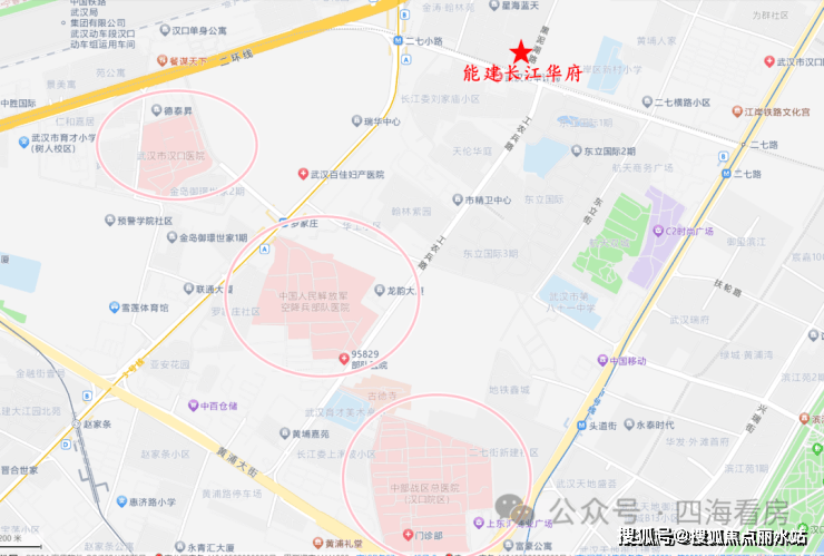 医疗上,周边有武汉市汉口医院、中国人民解放军空降部队医院(457)、中部战区总医院(161),距离项目都非常近,而且自驾路线也很简单。
