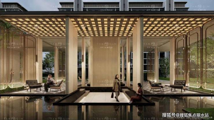 进门南北两侧长长的廊道,将归家的仪式感和度假感拉满。售楼处电话:400-8787-098接通后输入5678【特别是南侧廊道,左侧屏风式设计,与右侧迎宾水轴相呼应,营造南洋风情度假感。
