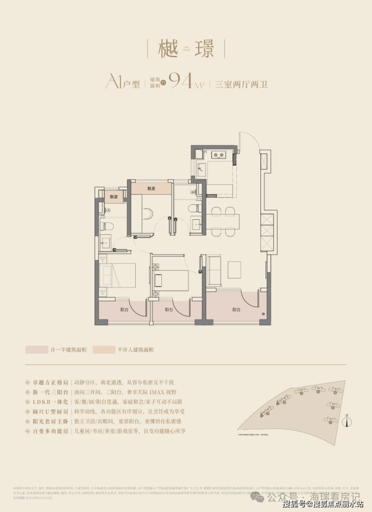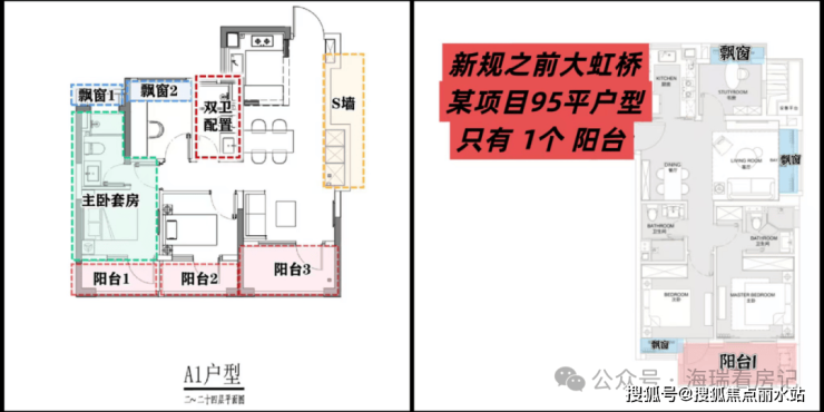 在这里,高层建面约94㎡户型做到了惊人的三阳台,对比同板块内以前的标杆小区,同面积段户型只做了1个阳台。不仅数量发生质的变化,实得面积也大大增加。