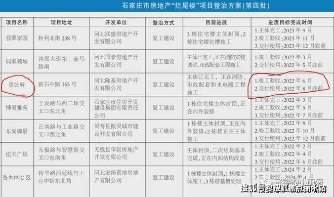 在近期石家庄烂尾楼项目整治中望公府列入第四批名单中,并且明确了竣工时间和交付使用时间。就是不知道使用什么方式解决一房多卖问题,2022年8月前交付使用。到时候让我们拭目以待。