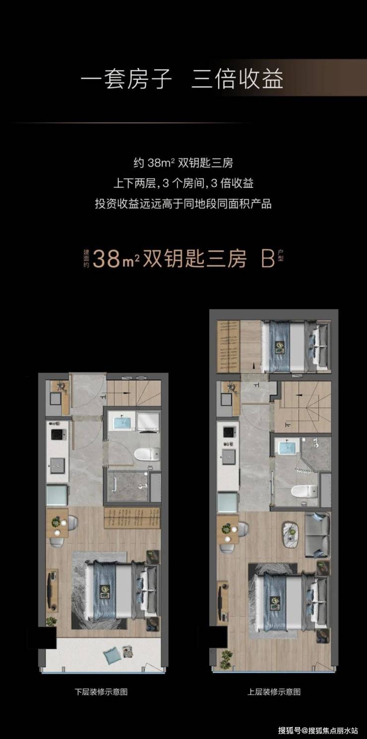 而约38-76㎡的产品构造上的应用,更将独特的几何审美诠释得淋漓尽致。在房产开发新政下,按最小单元分割的产品空间,可以更低总价实现买一层,送一层。周边高端产业、大型企业汇聚,也奠定了高租售市场的前景需求。