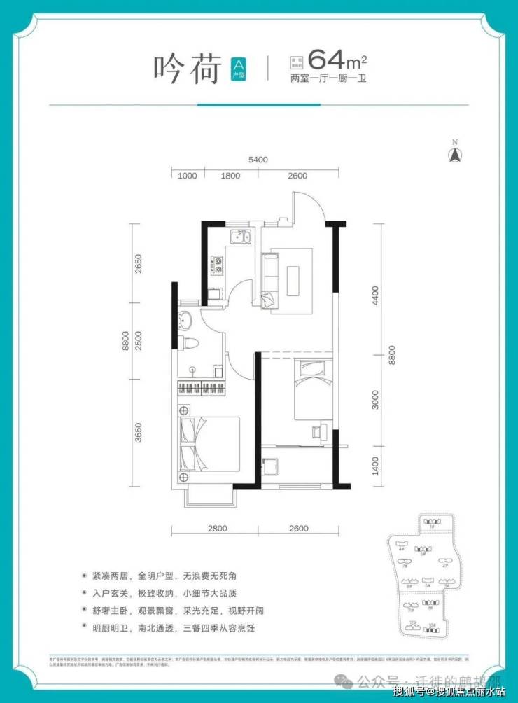 功能性设计:全明户型,高利用率(如64㎡两居、106㎡四居),赠送飘窗/阳台空间;