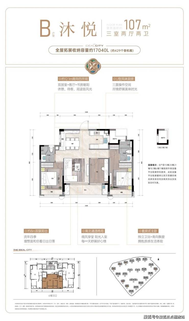 建面约107方户型,则把重点放在舒适度上。