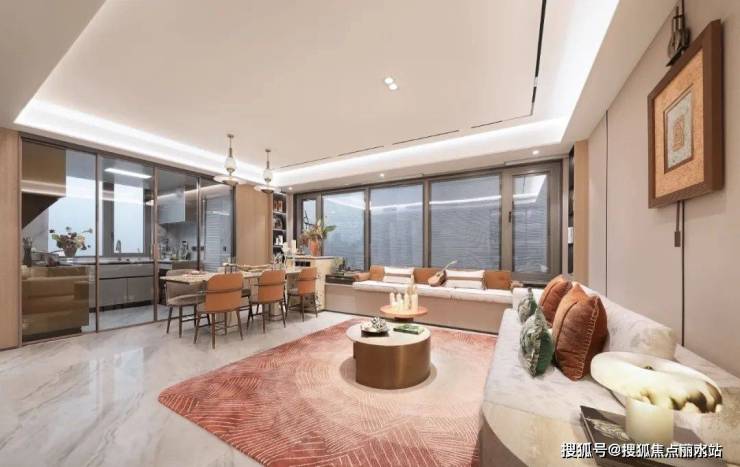 在精装修标准上,项目也是满格配置,比如中央空调,客厅岩板背景墙、墙面高档墙布;厨房老板三件套(燃气灶、油烟机、洗碗机)、可移动插座、多功能大尺寸水槽;卫生间方面,双智能马桶、暖风机、双面镜柜……