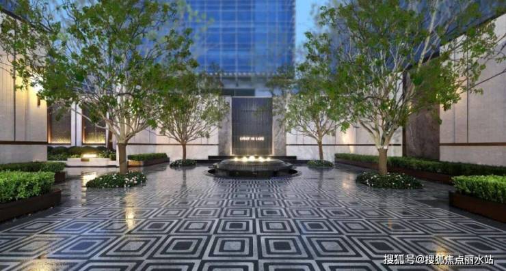 保利·和光屿湖以梵高棕、贝金米黄、安哥拉黑大理石等天然奢石铺陈归家动线: