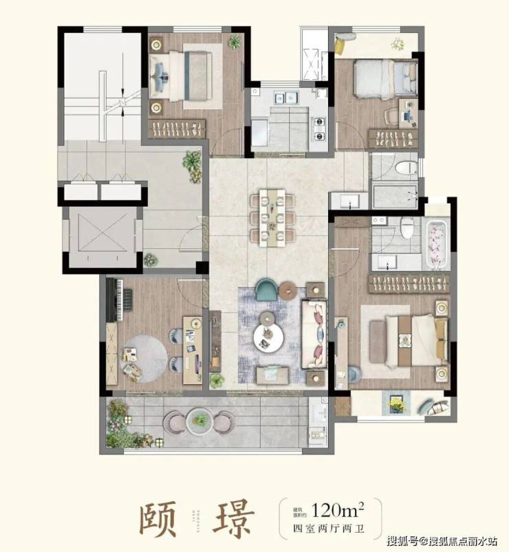 建面约120㎡洋房,经典四叶草户型,“0”浪费设计,空间利用率极高,让生活多了更多可能性。