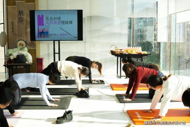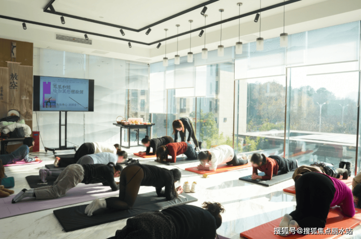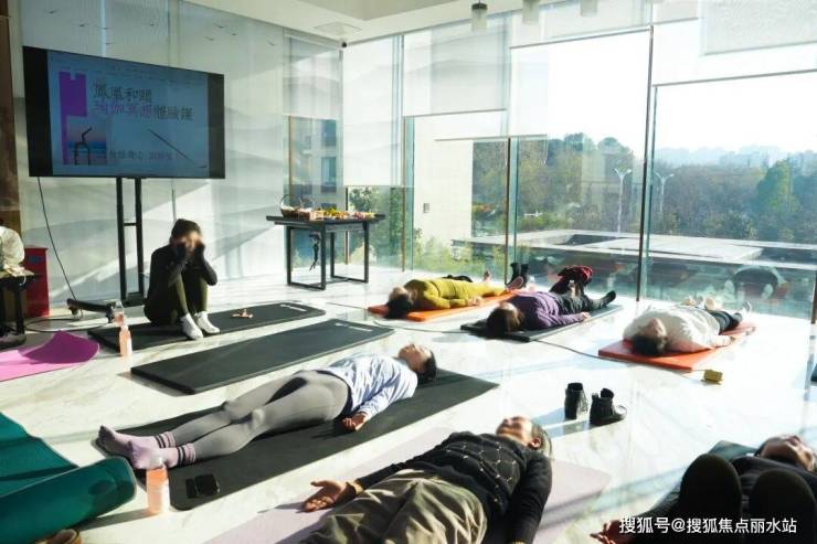 此刻,他们褪去社会身份,只身着素雅的瑜伽服,在专业导师的引导下,于社区中央景观旁缓缓舒展身体。