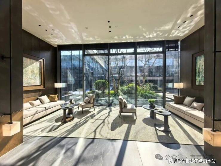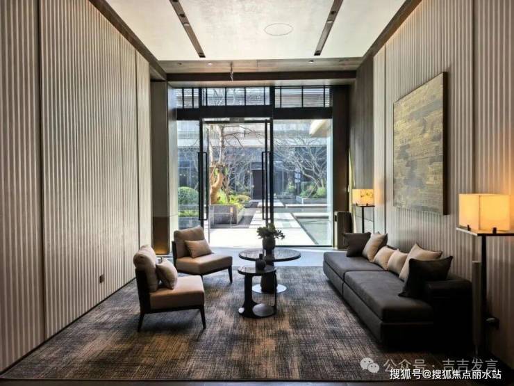 萃取“玉树琼枝”杉树美学,注入东方雅韵设计;立面与入户大堂融入铝板、奢石,让建筑自带高贵质感。