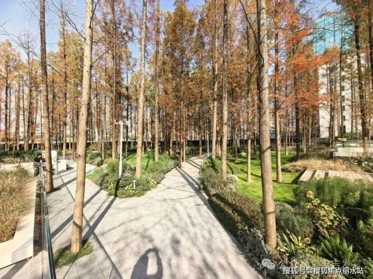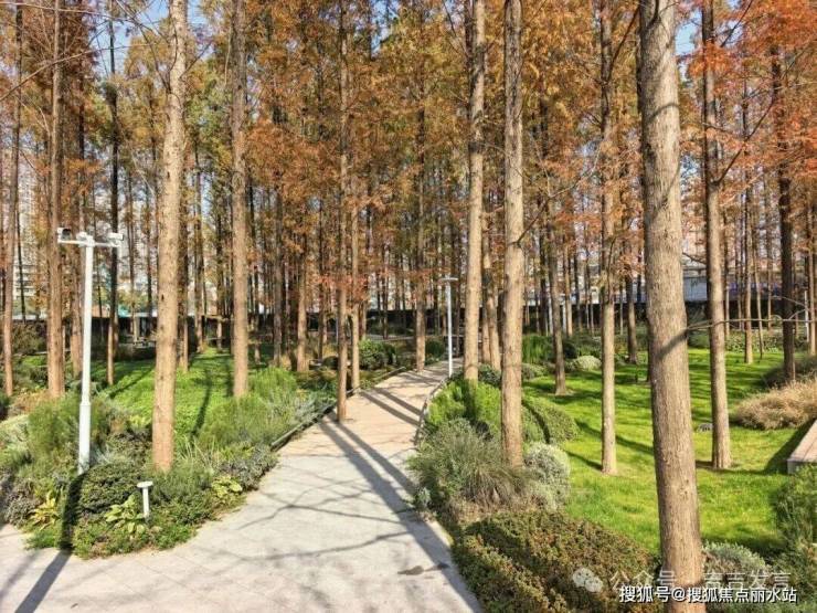项目保留约8500㎡原生水杉林,融入音乐喷泉、能量环等艺术设计,打造全龄友好的水杉生态街角公园,让自然与休闲触手可及。