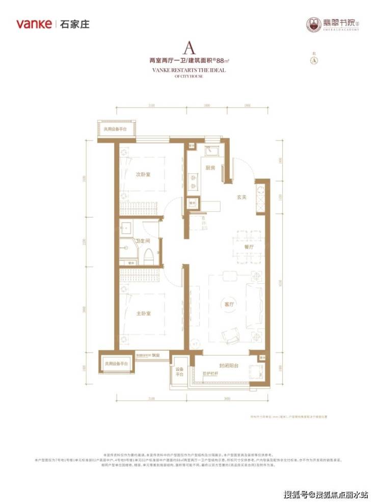 万科翡翠书院 平层户型·建面/88㎡
