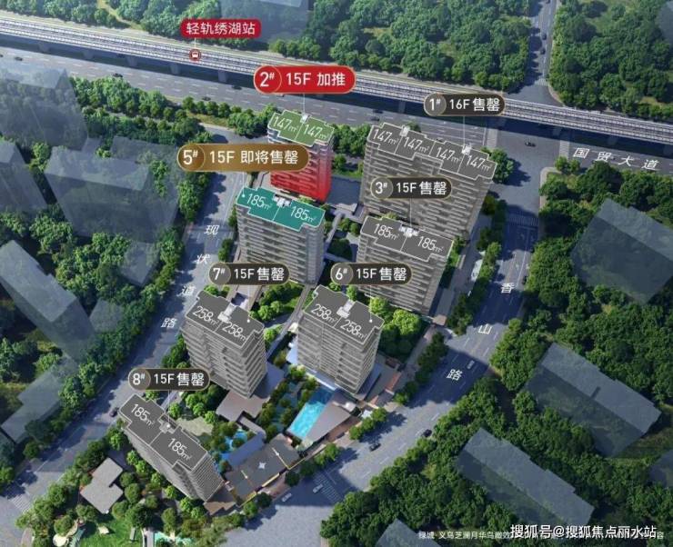 绿城·义乌芝澜月华鸟瞰效果图(过程稿),仅供参考,不作为要约内容