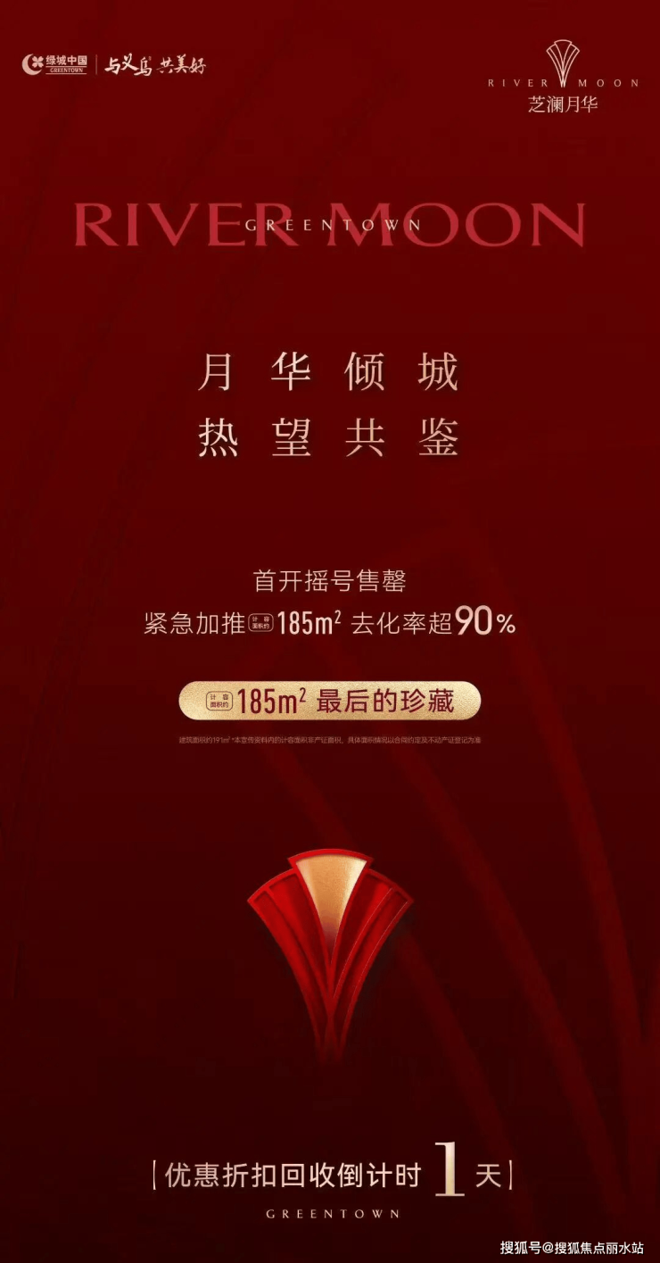 绿城·义乌芝澜月华首开摇号售罄,2小时劲销约12亿,随后加推5#计容面积约185㎡(建筑面积约191㎡)户型去化超90%(数据来源于案场统计)。